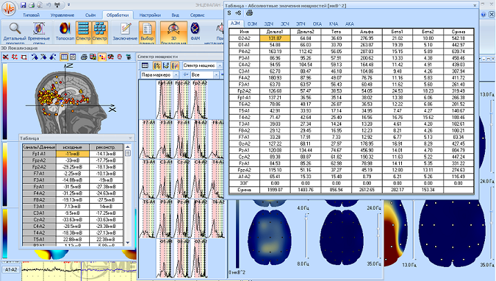 Dati sastādīti tabulu veidā, kurās uzrādīti pamatrādītāji normā- "kartēšanas" dati atsevišķām vecuma grupām, kā arī EEG korelācijas koherentā analīze normā. Tāpat ir dati par hiperaktīviem bērniem vecuma grupās: 5-7, 8-9, 10-13 g. Lai iegūtu pieeju datu bāzēm, sazinieties ar mums.