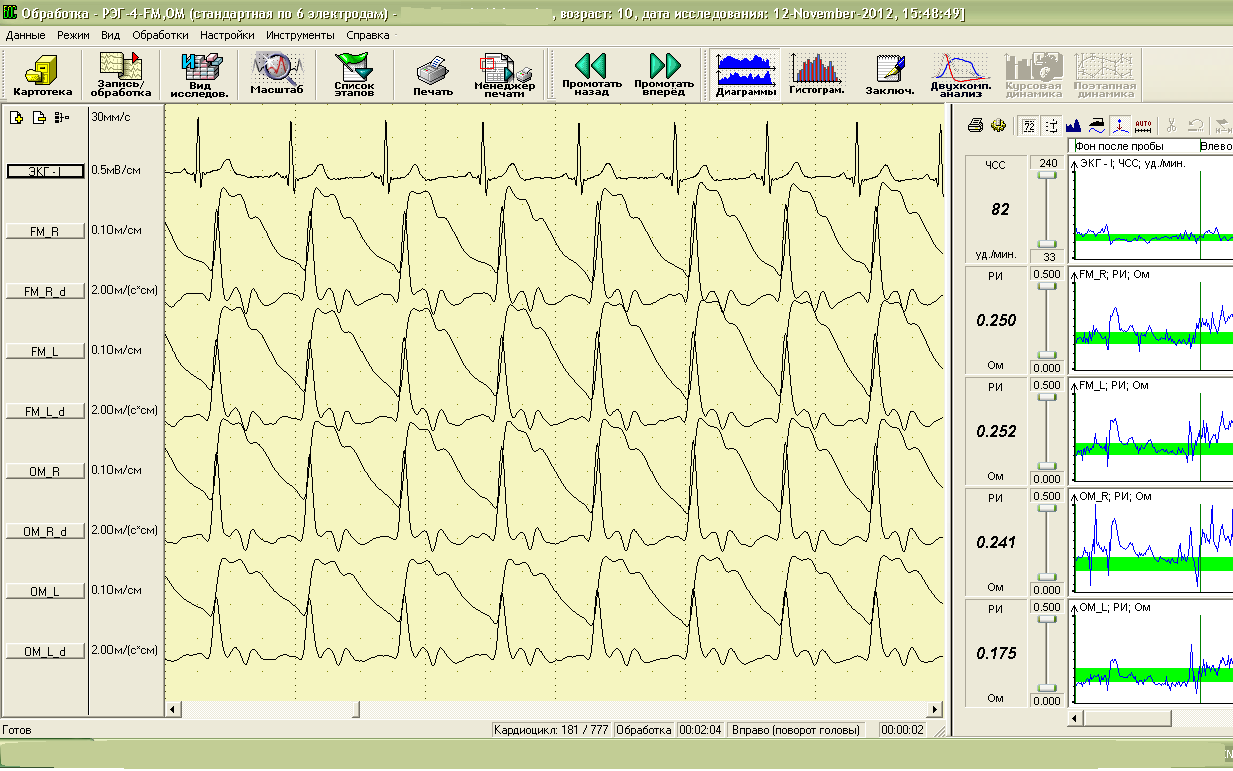 -novērtēt galvas smadzeņu asinsvadu stāvokli - reoencefalogrammu : pulsa pildījumu, dažādu kalibru asinsvadu elastiko-toniskās īpašības, venozās atteces stāvokli, starppusložu asimetriju, u.c.;
